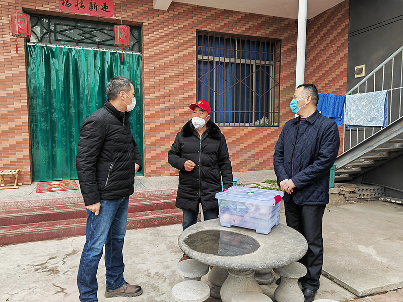 在大原村村委會(huì)門前,20余名黨員、團(tuán)員集體看望慰問防疫工作者,隨后全體黨員、團(tuán)員分兩組進(jìn)村入戶,詢問了解群眾生活需求、年貨置辦情況,傾聽群眾所思所想所盼,解決群眾大事小事急事。