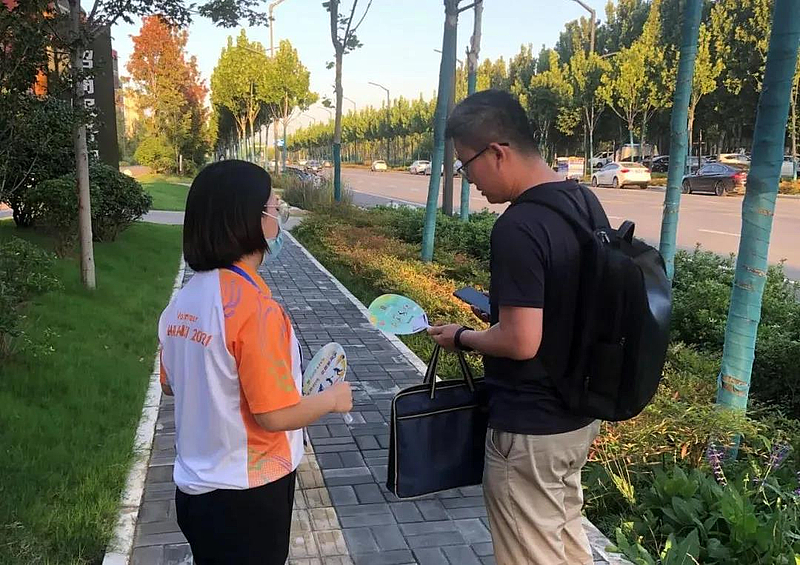 在一次志愿服務(wù)期間,她看到一名農(nóng)民工師傅下班路過西部云谷二期站崗?fù)r,想要上前咨詢但又滿臉羞澀遲遲沒有開口,王寶花主動迎上前詢問情況,原來是農(nóng)民工師傅想為他的孩子買一個十四運紀念品。她主動留下這名群眾的聯(lián)系方式,并告知其購買地點,同時為他贈送了十四運會紀念扇,并約定待志愿服務(wù)結(jié)束后可以將自己的志愿服裝送一件給小朋友。樸實的笑容綻放在師傅的臉上,他連連說道:“你們是優(yōu)秀的志愿者,給咱西安爭光咧!”