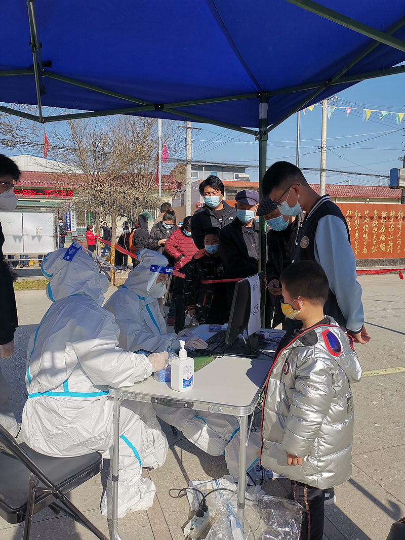 在馬王村核酸采樣點,一支平均年齡只有30歲的年輕團隊正有條不紊地協(xié)助著核酸采樣工作。為了保障身后群眾的生命健康安全,人力資源部全員聞令即動,鮮紅的黨旗下,共產黨員的初心使命在這樣的戰(zhàn)斗中得到了接力和傳承。
