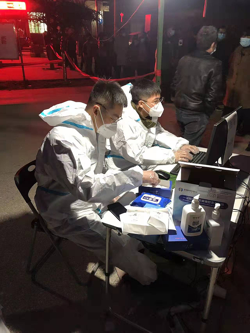部門僅有的3名男同志主動包攬了每個夜班,用延長執(zhí)勤時間傳遞對女同志的照顧。“入黨積極分子就應該更積極、更主動擔責任。”林魏佳是支部的一名入黨積極分子,堅守防疫一線,是他對黨組織做出的行動證明。
