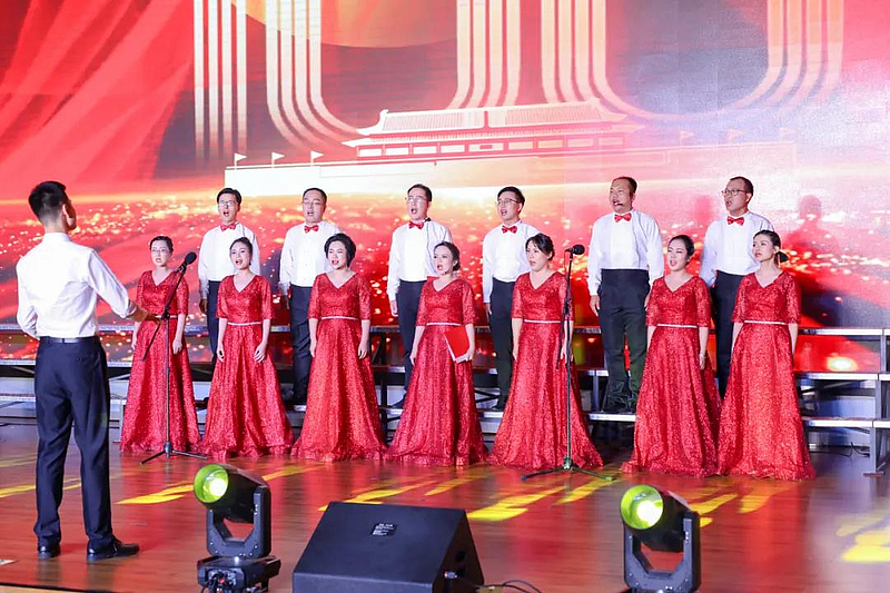 一首紅歌就是一腔豪情。“我們站在舞臺中央,肩上扛著使命榮光;仰望星辰大海方向,內(nèi)心擁抱超越力量……”《強(qiáng)國一代有我在》《小白楊》《我和我的祖國》等歌曲,唱出了灃西干部群眾與祖國同呼吸、共命運的赤子情懷,也展現(xiàn)了在新時代的偉大征程上,灃西人“以身許國,何事不可為”的勇敢擔(dān)當(dāng)和“敢為天下先”的創(chuàng)造豪情。