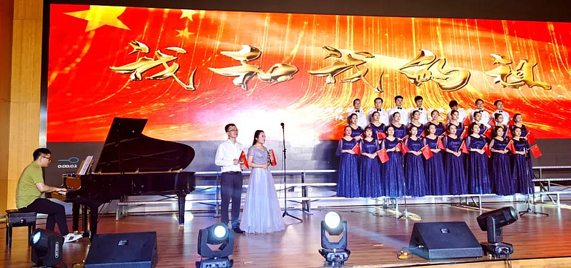 一首紅歌就是一段歷史。“從小爺爺對我說,吃水不忘挖井人,曾經(jīng)苦難才明白,沒有共產(chǎn)黨哪有新中國……”《在燦爛的陽光下》《沒有共產(chǎn)黨就沒有新中國》《飛越大渡河》《南泥灣》等歌曲紛紛唱響,激昂的音律,帶領(lǐng)大家回顧黨的光輝歷史,謳歌黨的豐功偉績,展現(xiàn)中國共產(chǎn)黨為人民謀幸福,為中華民族謀復(fù)興的初心與使命。