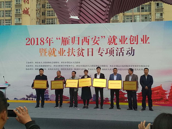 10月16日,陜西灃西物業(yè)管理有限公司作為西咸新區(qū)扶貧基地代表參加2018年“雁歸西安”就業(yè)創(chuàng)業(yè)暨就業(yè)扶貧日頒獎活動,被授予“西安市就業(yè)扶貧基地”榮譽(yù)稱號。