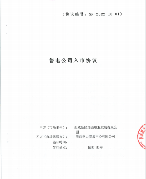 近日,灃西集團能源公司下屬電業公司與陜西電力交易中心有限公司順利完成《售電公司入市協議》簽訂流程,標志著電業公司取得了作為配售電公司的全部準入資質,并正式以配售電公司的身份進入電力交易市場。