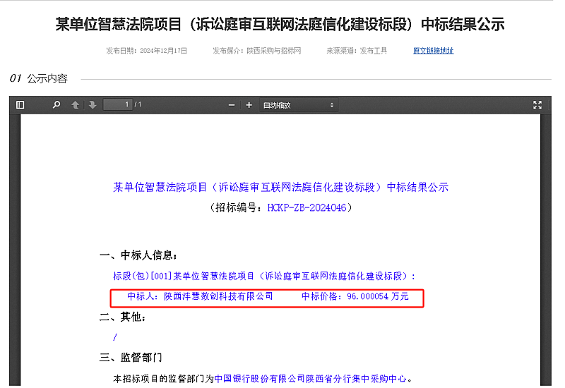 近日,灃西科創(chuàng)子公司灃慧數(shù)創(chuàng)成功中標(biāo)某單位智慧法院(訴訟庭審互聯(lián)網(wǎng)法庭信化建設(shè)標(biāo)段)公開招標(biāo)項(xiàng)目,標(biāo)志著灃慧數(shù)創(chuàng)在弱電智能化市場(chǎng)項(xiàng)目承接方面再次取得新突破。