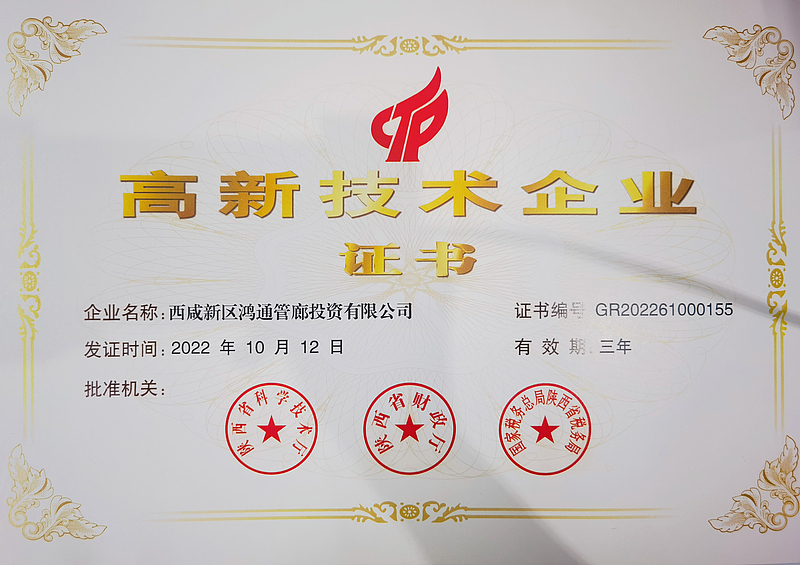 近日,陜西省科技廳公布陜西省2022年第一批高新技術(shù)企業(yè)名單,灃西新城綜合管廊的運(yùn)營服務(wù)者,灃西集團(tuán)投資公司全資子公司——西咸新區(qū)鴻通管廊投資有限公司,光榮上榜!五位一體多項(xiàng)突破在管廊公司的“精心守護(hù)”下,灃西新城綜合管廊穩(wěn)步提升,實(shí)現(xiàn)了運(yùn)營里程、運(yùn)營收入、安全運(yùn)維和運(yùn)維模式四個(gè)突破。堅(jiān)持智能化管理,首次將區(qū)塊鏈技術(shù)應(yīng)用于管廊機(jī)器人智能巡...