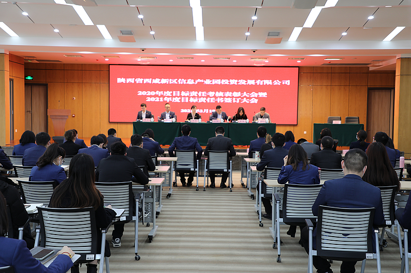 近日,信息產業園公司召開2020年度目標責任考核表彰儀式暨2021年度目標責任書簽訂大會。信息產業園公司全體干部員工參加會議。