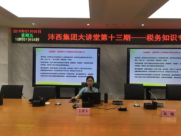 人力資源部及財務部聯合組織召開2019年“灃西集團大講堂”第十三期——稅務知識專題培訓。