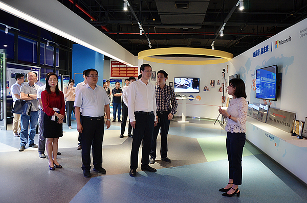 7月9日上午,西安市科學技術局黨組書記、局長李志軍、陜西省科學技術廳高新技術處副處長武鵬一行調研陜西微軟創新中心(陜西MIC),西咸新區改創局局長王軍平、西咸新區改創局副局長王斌、灃西新城改創局局長申博陪同。