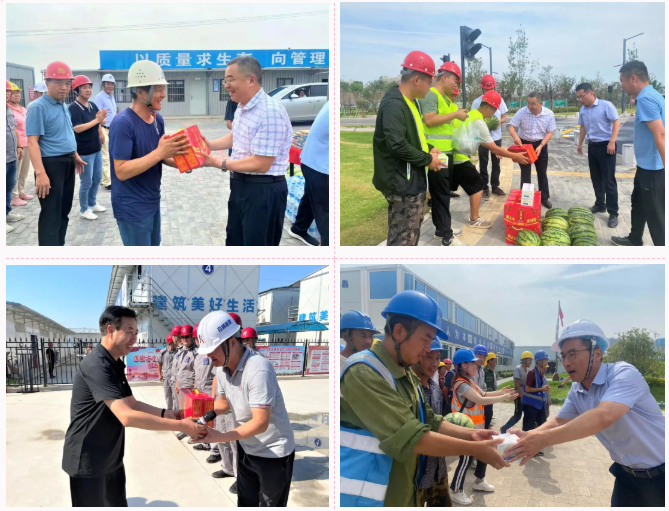 將學習貫徹“七一”重要講話精神與“我為群眾辦實事”實踐相結合,確保在安全生產、人文關懷等方面把實事辦實,把好事辦好。通過召開安全生產專題會,開展消防演練、電梯應急演練等活動,為項目建設筑牢安全防線,保障群眾和員工生命財產安全。7月份以來,集團公司主要領導先后5次帶隊前往集團13個項目一線“送清涼”,向戰高溫、斗酷暑的一線員工和勞務工人送去清涼解暑的飲品、藥品、水果等防暑降溫物資。為確保轄區夏季高效供冷,能源公司第一時間解決施工方供電故障。物業公司為社區業主搶修故障管道,確保轄區群眾“清涼過夏”,收獲2面錦旗、1封表揚信,將“七一”重要講話精神落到實處,真正為群眾解難題、辦實事。