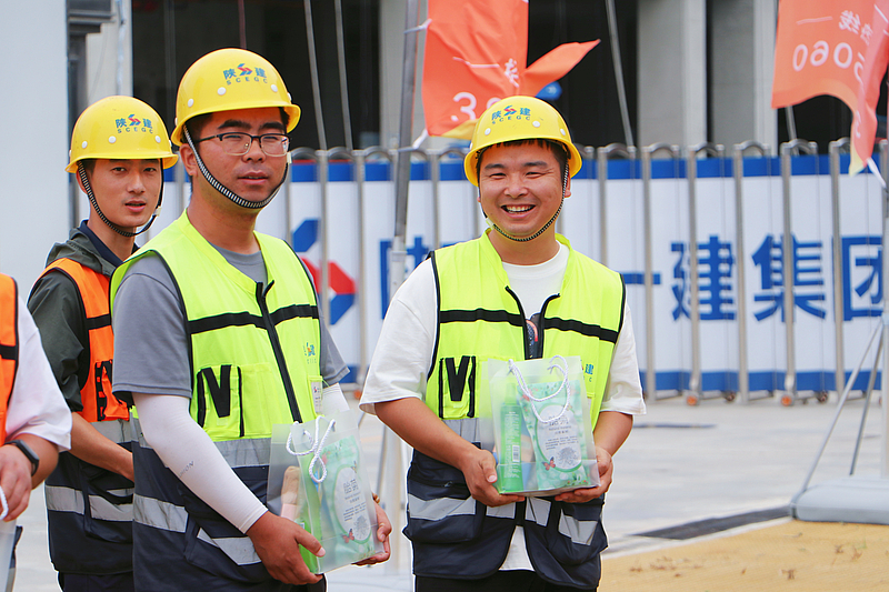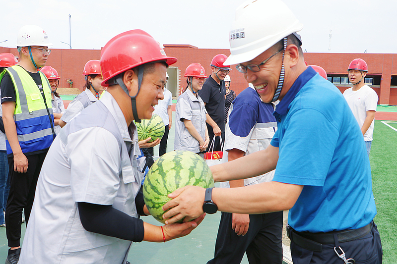 隨后,楊建柱一行將精心準(zhǔn)備的涼茶、西瓜、冰袖等防暑降溫物資送到堅守在開發(fā)建設(shè)和管理一線的勞動者們手中,對大家在高溫天的持續(xù)堅守和辛勤勞動表示感謝。