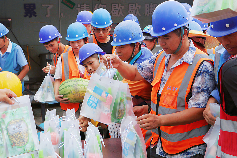 7月26日下午,灃西集團(tuán)黨委書(shū)記、董事長(zhǎng)楊建柱,總經(jīng)理郭廷喜帶隊(duì)赴在建項(xiàng)目現(xiàn)場(chǎng)開(kāi)展夏季“送清涼”慰問(wèn)活動(dòng),副總經(jīng)理秦繼紅、張桂林參加。夏季“送清涼”系列活動(dòng)送的不僅是一把“清涼傘”、一絲“清涼風(fēng)”,更是給廣大一線員工送來(lái)一份關(guān)懷、一種“溫度”。灃西集團(tuán)連續(xù)多年開(kāi)展夏日“送清涼”活動(dòng),以此鼓舞員工士氣,激發(fā)干事熱情。